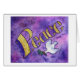La palabra "paz" está pintada en un suave amarillo dorado contra un fondo rosa y morado. Una paloma de paz sostiene una rama de olivo en su pico. La pintura acuarela tiene un contraste textural y espuma de una capa clara de purpurina. La serie inspiradora de pintura se toma del texto utilizado en las pinturas de ángel. "Elijo abrazar la paz" -Mi vida, mi elección "En mi vida elijo darle la bienvenida a mi paz"- Feel Beauty "No puede destruir la paz" -Lo que el cáncer no puede hacer Estas imágenes están diseñadas para proporcionar reflexión y meditación en una sola palabra. También puede combinarlos para hacer su propia serie de palabras para meditación/ contemplación.