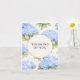 Envía un momento de belleza y comodidad con esta elegante tarjeta de hortensias azules. Los florales suaves de acuarela envuelven un círculo con borde dorado, creando un diseño calmado y edificante perfecto para pensar en ti, condolencias o ánimos cotidianos.