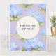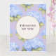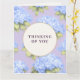 Envía un momento de belleza y comodidad con esta elegante tarjeta de hortensias azules. Los suaves florales de acuarela envuelven un círculo con borde dorado, creando un diseño tranquilo y edificante perfecto para pensar en ti, condolencias o estímulo diario.