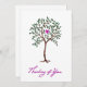 Tarjeta de pensar en ti, un árbol con un corazón en el medio. Creado originalmente usando tinta y acuarela.