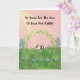 Tarjeta de pérdida de conejo mascota con una ilustración de un conejo en el centro de una guirnalda parcial de hojas verdes, flores azules, hierba y un haz de luz. Una tarjeta maravillosa para enviar a un amigo o familiar que ha perdido su conejo mascota. Gracias a hungryjpeg por algunos de los elementos del diseño.