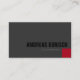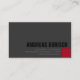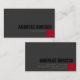 Tarjeta profesional de perfil gris oscuro Personalizado con texto de nombre negro y texto gris claro para otra información. Impresión de dos lados, donde el color de fondo es cambiable. En la esquina inferior derecha hay un atento cuadrado rojo que se repite en la parte trasera también. A continuación se presentan otras variaciones de este diseño.