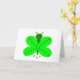 Esta divertida tarjeta del Día de San Patricio cuenta con un personalizado de una alegre mariposa con un cuerpo verde oscuro y alas verde fluorescentes. Sobre las alas está el texto verde oscuro que dice "Feliz San Pato". Esta simpática mariposa está diseñada para atraer a todas las edades y está lista y esperando desearle a alguien un feliz Día de San Patricio. Hay un saludo de personalizable en el interior de la tarjeta.