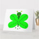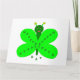 Esta divertida tarjeta del Día de San Patricio cuenta con un personalizado de una alegre mariposa con un cuerpo verde oscuro y alas verde fluorescentes. Sobre las alas está el texto verde oscuro que dice "Feliz San Pato". Esta simpática mariposa está diseñada para atraer a todas las edades y está lista y esperando desearle a alguien un feliz Día de San Patricio. Hay un saludo de personalizable en el interior de la tarjeta.