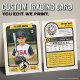 Acércate a la mesa con esta tarjeta de intercambio de béisbol de estilo personalizado vintage en negro y oro. Personalice con la foto, las estadísticas y los detalles de su jugador para crear un conservador único. Perfecto para los aficionados al béisbol, los jugadores de béisbol, los jugadores de ligas pequeñas, los regalos de los entrenadores, los cumpleaños y los fiestas deportivos. Una forma divertida de celebrar el juego y preservar los recuerdos al estilo clásico de las tarjetas de intercambio. ❗ Envíame un mensaje si lo necesitas en colores diferentes.