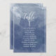 Ayude a sus invitados a encontrar su mesa con estas elegantes tarjetas de plan de asientos de acuarela en tonos azul marino y azul con los nombres de los invitados. Tarjetas a doble cara para que los invitados puedan buscar por ambos lados, delantero o trasero, sus nombres. Espacio claro alrededor que le da la libertad de usar clips o perforar un agujero para exhibiciones colgantes, o usar un soporte/ marco de mesa. Exquisito fondo de lavado de acuarela azul marino y azul y texto blanco. Detalles de caligrafía moderna manuscrita. Parte de nuestra colección "Boda de Monograma Botánico de Acuarela Azul Marino" con una variedad de productos coordinados disponibles, incluyendo tarjetas de número de mesa y menús y más. Visite toda la colección con este enlace: https://www.zazzle.com/collections/navy_watercolor_botanical_monogram_wedding-119781162008