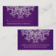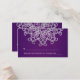 Una hermosa amatista de ciruela púrpura y un falso boda de aspecto plateado o cualquier tarjeta especial para la ocasión de asiento con un sari ornamental de inspiración india exótica con un diseño de loto y quemaduras solares florales. Esta elegante y hermosa y moderna y lujosa tarjeta estilo indio es perfecta para cualquier ocasión formal con una temática de aladdin o noches marroquíes indonesias de asia oriental. Diseño © Chrissy H. Studios, LLC. Todos Los Derechos Reservados.