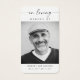 Captura la esencia del recuerdo con nuestra moderna tarjeta de oración conmemorativa de la simpatía por la fotografía funeraria. Esta tarjeta personalizado y personalizada es una manera sincera de honrar la memoria de tu ser querido en un momento difícil. El diseño minimalista y elegante exuda sencillez y gracia, permitiendo que el enfoque permanezca en la preciada foto que usted elige incluir. Las palabras "En memoria amorosa" sirven como un recordatorio gentil del impacto que tu ser querido tuvo en tu vida y en la de los demás. Con un fondo blanco moderno, esta carta de oración ofrece una estética limpia y contemporánea. Se trata de un conservador significativo que proporcionará consuelo y consuelo a quienes lo reciben. Crea un homenaje duradero a tu ser querido con nuestra tarjeta de oración Modern Funeral Fotoempatía Memorial y comparte su memoria con los que más importan.