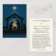 Una tranquila y reverente silueta de la Natividad adorna la parte delantera de esta tarjeta de plegarias funerarias católicas, perfecta para ofrecer comodidad y recuerdo durante la temporada de Navidades. Con la Sagrada Familia bajo la Estrella de Belén, este diseño pone en el centro de la atención la promesa de la vida eterna. La parte trasera incluye una oración tradicional para el descanso del alma, con nombre de personalizable, fechas y escritura. Un bello tributo para los nacidos de la vida eterna cerca de la Natividad de Nuestro Señor.
