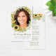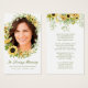 Envíe esta elegante tarjeta de oración floral personalizado a la familia y amigos en recuerdo de su ser querido. Este diseño presenta una foto en la parte delantera enmarcada en oro falso con girasoles amarillos pintados a mano con vegetación. Debajo en el guión verde están las palabras "En memoria amorosa" con un nombre y fechas para personalizar. La parte trasera de la tarjeta tiene una plegaria de Hail Mary que se puede conservar como está o se puede acentuar a medida con una cruz de oro con un girasol. Diseñado por Susan Coffey.