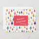 Pequeños árboles de Navidad adornos este colorido y festivo patrón retro para su tarjeta de bienvenida de vacaciones de invierno. Los "Saludos de temporada" son el saludo, y atraerán a tus amigos y parientes que disfrutan de la apariencia vintage de mediados de siglo mientras reciben y miran la carta caprichosa que les has enviado. Todo el texto se puede editar. Asegúrese de cambiar los nombres de ejemplo y las fechas que están en el frente y en el interior a los que desee.