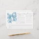Esta tarjeta horizontal Baby Predictions & Advice presenta un diseño sencillo y elegante, ideal para cualquier ducha para bebés. A la izquierda, una suave proa azul acuarela aporta un toque dulce y sutil sin que la disposición sea demasiado temática. El estilo general es mínimo, con fuentes y líneas grises en una mezcla de escritura a mano y tipos de letra serif clásicos para un ambiente atemporal y refinado. Se invita a los huéspedes a completar sus mejores suposiciones para los detalles de llegada del bebé, como fecha, hora, peso, color de los ojos, color de pelo y a quién se parecerá el bebé. En la parte inferior, hay espacio para dejar un poco de consejo a los futuros padres y firmar su nombre. La parte trasera está decorada con un fondo blanco y limpio, aunque puede cambiarse a cualquier color para que coincida con el tema de la ducha. Personalizable total, esta carta le da un toque suave y reflexivo a su celebración.