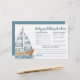 Esta tarjeta horizontal Baby Predictions & Advice está diseñada con un divertido tema náutico, ideal para una ducha a bordo o cualquier celebración de inspiración oceánica. A la izquierda, un barco de vela clásico azul y blanco se sitúa sobre un suave lavado de agua acuática, añadiendo un ligero toque playero sin superar el diseño. A la derecha, se invita a los huéspedes a completar sus mejores suposiciones para la llegada del bebé, incluyendo fecha, hora, peso, color de los ojos, color de pelo y a quién se parecerá el bebé. En la parte inferior, los clientes pueden dejar un consejo rápido para los futuros padres y firmar su nombre, creando un dulce tesoro. La parte trasera está decorada con un suave fondo azul, que se puede cambiar a cualquier color para que coincida con el tema de la ducha. El personalizable completo, esta tarjeta añade un poco de encanto náutico, al tiempo que mantiene las cosas sencillas y reflexivas.