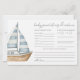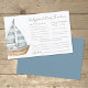 Esta tarjeta horizontal Baby Predictions & Advice presenta un diseño sencillo y elegante, ideal para cualquier ducha para bebés. A la izquierda hay un suave ilustracion acuático en velero que añade un toque náutico suave sin temática. El diseño es mínimo, con fuentes y líneas grises en una mezcla de delicados guiones manuscritos y tipos de letra serif clásicos para un aspecto atemporal y refinado. Se invita a los huéspedes a completar sus mejores suposiciones para los detalles de llegada del bebé, como fecha, hora, peso, color de los ojos, color de pelo y a quién se parecerá el bebé. En la parte inferior, hay espacio para dejar un poco de consejo a los futuros padres y firmar su nombre. La parte posterior es de un color sólido y depurado que se puede cambiar para que coincida con el tema de la ducha. Completamente personalizable, esta carta es una adición dulce y elegante a tu celebración.