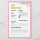 Esta tarjeta Baby Predictions es una actividad divertida y se mantiene para cualquier Baby Shower. Esta tarjeta viene en un esquema de color rosa, con confetti colorido. ¡La incorporación perfecta a un fiesta de Baby Shower o Baby Sprinkle! Encontrar otros juegos y elementos coincidentes en www.zazzle.com/mypartydesign