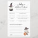 ¡Prepárate para una fiesta de baby shower de Halloween espeluznante! Haz que la llegada de tu pequeño Boo sea especial con nuestra tarjeta personalizada de predicciones de bebé de Halloween. Celebra con un diseño único y personalizado que presenta el encanto de diseños de acuarela pintados a mano de fantasmas espeluznantes, arañas lindas, calabazas caprichosas y hojas otoñales de color naranja quemado, mezclando sin esfuerzo la alegría de dar la bienvenida a un nuevo bebé con el espíritu divertido de Halloween. ¡Ordena ahora y obtén el comienzo perfecto para tus celebraciones de Halloween!
