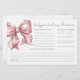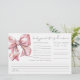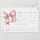 Esta tarjeta horizontal Baby Predictions & Advice presenta un diseño sencillo y elegante, ideal para cualquier ducha para bebés. A la izquierda, una suave proa color de agua rosada le da un toque delicado y dulce a la disposición, sin que se sienta demasiado temática. El estilo general es mínimo, con fuentes y líneas grises en una mezcla de escritura a mano y tipos de letra serif clásicos para un ambiente atemporal y refinado. Se invita a los huéspedes a completar sus mejores suposiciones para los detalles de llegada del bebé, como fecha, hora, peso, color de los ojos, color de pelo y a quién se parecerá el bebé. En la parte inferior, hay espacio para dejar un poco de consejo a los futuros padres y firmar su nombre. La parte trasera está decorada con un fondo blanco y limpio, aunque puede cambiarse a cualquier color para que coincida con el tema de la ducha. Personalizable total, esta carta le da un toque suave y reflexivo a su celebración.