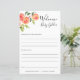 Haga que sus huéspedes llenen estos adorables deseos de tarjetas para bebés en su ducha de bebé. Cuenta con un ilustracion de vegetación y melocotones que combinan con nuestra pequeña y dulce colección de duchas para bebés de durazno. Personaliza el con el nombre y la fecha de ducha de la futura mamá.