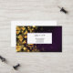 Esta tarjeta de visita se muestra en el material básico de la tarjeta con una moderna impresión abstracta en tonos púrpura y dorado con texto de color negro. Personalizar esta tarjeta, cambia el texto a la tuya. Imagen de stock