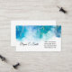 Esta tarjeta de visita se muestra en una imagen de arte abstracta en azul y oro.