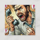 Agarrador acercamiento al estilo cómico de un hombre nervioso gritando al teléfono, sudor cayendo por la frente. Las características exageradas y las líneas en negrita amplifican su urgencia, convirtiéndolo en una imagen sorprendente para el diseño de una tarjeta de llamada.