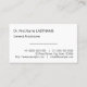 Este diseño básico y mínimo de tarjetas de visita incluye un nombre, un título de profesión y detalles de contacto que se pueden personalizar. Tarjetas de visita como éstas pueden ser utilizadas por un profesional como un médico general, un dentista o un médica médico.