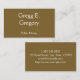 Este diseño básico, sencillo y minimalista de tarjetas de visita tiene un fondo marrón. Podría ser utilizado por un profesional como un notario público, un abogado o un abogado. El nombre, la profesión y los datos de contacto pueden ser personalizados.