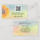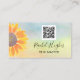 Esta colorida tarjeta de visita de Reiki Master está decorada con un girasol amarillo y un colorido fondo acuático. Personalizable fácil con sus detalles y el código QR. Utilice la Herramienta de diseño para cambiar el tamaño, estilo o color del texto. Porque creamos nuestra obra de arte no encontrarás esta imagen exacta de otros diseñadores. Acuarela original © Michele Davies.