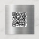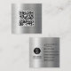 Una moderna tarjeta de negocios minimalista personalizada de imitación de metalizado plateado. Una forma sencilla y profesional de presentar tu negocio. Personalice con su logotipo, código QR y detalles para crear su propia y elegante tarjeta de visita en blanco y negro. Personalizar aún más con un fondo de color personalizado o una fuente. Iconos de medios sociales incluidos en el diseño de esta tarjeta de visita para uso personal.