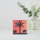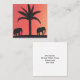 Esta tarjeta está diseñada con mi representación de dos elefantes y una silueta de palmera contra un cielo con puesta de sol naranja, y está lista para representar tu negocio.