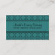 Diseño de tarjetas de presentación con encanto de país dulce y delgado en verde azulado con un fondo de patrón de motivos de país. Esta tarjeta de visita rústica y elegante es perfecta para una variedad de campos. Fácil de personalizar, simplemente agregue los detalles de su negocio a los campos proporcionados. Haga clic en el botón "Personalizar" para encontrar opciones de personalización adicionales.