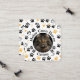 The front showcases a prominent circular frame for your Maine Coon's portrait, surrounded by your cattery name in a classic, elegant font. The background is adorned with a chic pattern of black and gold paw prints and hearts. The reverse side provides a clean, organized space for all your vital information, including your name, phone, email, website, and social media handles.