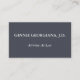 Este diseño sencillo, mínimo y limpio de tarjetas de visita tiene un fondo gris oscuro. Podría ser utilizado por un profesional, como un abogado, un agente de patentes, un asesor jurídico o un abogado. El nombre, la profesión y los datos de contacto pueden ser personalizados.