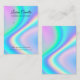 Una atractiva tarjeta de visualización de pendientes con texto elegante y fondo holográfico falso.