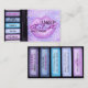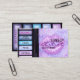 Diseño de tarjetas de visita de artista de maquillaje con paleta de sombra de ojos sobre fondo cardíaco violeta brillante cubierto de purpurina. Esta elegante tarjeta de perfil es perfecta para esteticistas, cosmetólogos, salones de belleza para el cabello y maquillaje y otras profesiones similares. Si necesitas ayuda con este diseño, no dudes en contactarme. Ver también: