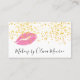 Una glamurosa tarjeta de visita con un ilustracion llamativo presenta un impresionante purpurina de imitación de oro emparejado con labios rosas irresistibles, creando una obra maestra visual que representa perfectamente tu arte en el mundo del maquillaje.