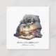 Ilustracion de un cachorro en una almohada en un rincón de lectura para niños, tarjeta de visita de autor para niños.