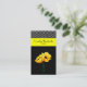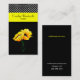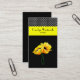 Elegante tarjeta de visita para damas, hecha en negro, con adorable arte gráfico de dos amapolas amarillas. Una franja amarilla en negrita, encima de las amapolas, y un patrón de puntos polka en blanco y negro, en la parte superior de la tarjeta. La espalda está hecha en negro sólido. El texto blanco, negro y amarillo está listo para personalizar con su información. Una carta muy bonita para cualquier tipo de ocupación o negocio.