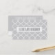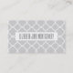 Estas simples tarjetas profesionales de negocios blancas y grisáceas son una opción elegante y fresca para el profesional del spa o la terapia. Esta elegante tarjeta de visita es un diseño geométrico único y femenino para terapeutas e instructores contemporáneos. También es una gran elección para un salón o estilista, o para cualquiera que desee una tarjeta de visita simple y elegante. Esta tarjeta coordina con la colección de colores Pantone Tinted Medley para 2015.
