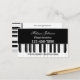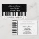 Tarjeta de visita en blanco y negro con la imagen de un piano. La parte posterior de la tarjeta se puede usar para citas.
