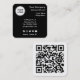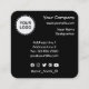 Tarjeta comercial cuadrada genérica con logotipo personalizado y campos de texto. Color de fondo personalizado. Código QR personalizado en la parte posterior.