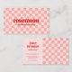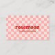 Esta tarjeta de visita de estilo retro presenta un fondo rosado a cuadros y un tipo de letra rojo que contrasta. Añade la información de tu empresa y los medios sociales o el sitio web al dorso de la tarjeta.