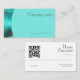 Guay, diseño minimalista de tarjetas de visita de código QR. Tiene en marcha este patrón abstracto, súper limpio y simple. Los colores son todos turquesa, como un verde chill y un azul claro suave, muy agradable. Esta tarjeta es perfecta si eres propietario de una pequeña empresa, como un peluquero, diseñador o maquillador. El código QR facilita la difusión de información y enlaces, ideal para conocer gente y conseguir clientes en el mundo de la belleza y el diseño. Es sencillo, elegante y te hace parecer profesional.