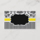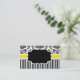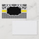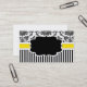 Tarjeta de presentación elegante con fondo de damasco blanco y negro y banda amarilla. Hay una etiqueta en el centro disponible para el texto.