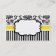 Tarjeta de presentación elegante con fondo de damasco blanco y negro y banda amarilla. Hay una etiqueta en el centro disponible para el texto.