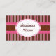 El chocolate oscuro y las rayas de frambuesa decoran esta tarjeta profesional. Personalizar esta tarjeta de visita para satisfacer sus necesidades. El diseño es de arte original. Utilice esta elegante tarjeta de visita para una guardería, salón de belleza, peluquería, chocolate gourmet, dulces, catering, cosmetólogo, bed and breakfast, boutique, panadería, cafetería, guardería, etc.