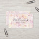 Tarjeta de visita moderna y elegante con un fondo acuático con salpicaduras dinámicas, salpicaduras y gotas de color rosa, rosa y amarillo. Ideal para peinados y maquilladores, esta tarjeta le garantiza una impresión contemporánea y impactante. Explore productos adicionales con el mismo diseño acuático moderno para completar su aspecto profesional.