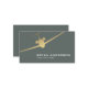 Tarjeta de visita con una imagen de avión de chorro de color dorado elegante.