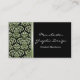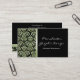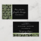 Promociona tu empresa con este diseño de tarjetas de visita sencillo y elegante, con un borde damasco esmeralda separado del fondo ébano por una cinta satinada. El texto de personalizable le permite alterar fuentes, cambiar colores y tamaños de texto para reflejar mejor los servicios de su empresa. Adecuado para diseño gráfico, marketing y ventas o fotografía.