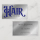 Cabello por tarjeta de visita Typography. Azul sobre acero plateado lo hace áspero y moderno. Las letras de tipografía están en azul con sombra de acero plateado y en línea con un fondo brillante de acero plateado faus El dorso tiene el mismo aspecto de acero con el texto personalizado en gris de referencia. Personalizar el texto para que se ajuste a su negocio - puede añadir el nombre del salón y la dirección de la calle si lo desea. Conéctate con amigos y clientes en instagram y facebook y muestra tu trabajo de moda.